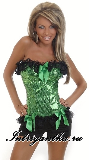 Главная страница » Продукция » Корсеты и Бюстье »» Корсет | Рекомендуем »» Корсет, юбка, платье | Корсеты и Бюстье »» Размер S/M (42-44рр) » Тканевый корсет зеленые паетки бантики гипюр