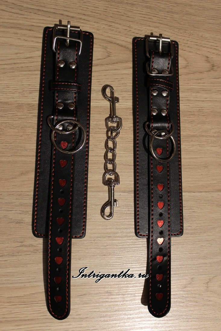Главная страница » Продукция » Аксессуары »» Комплекты БДСМ | Кожа и Винил »» Комплекты БДСМ | Рекомендуем »» Аксессуары к костюмам » Черные наручники регулируемые с сердечками